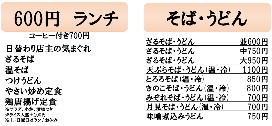 ・土・日曜日は600円ランチお休みです。