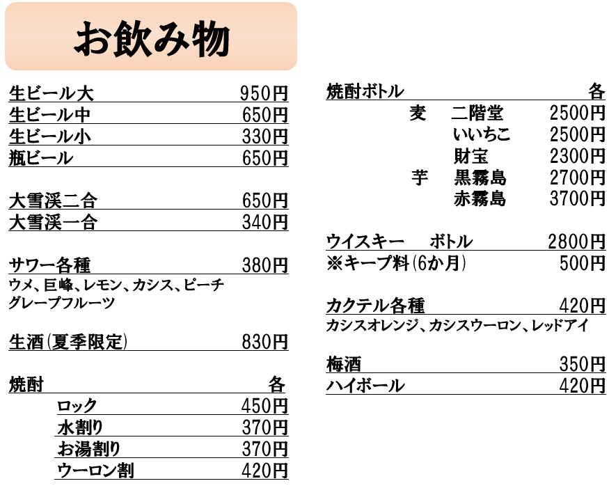 お品書き
